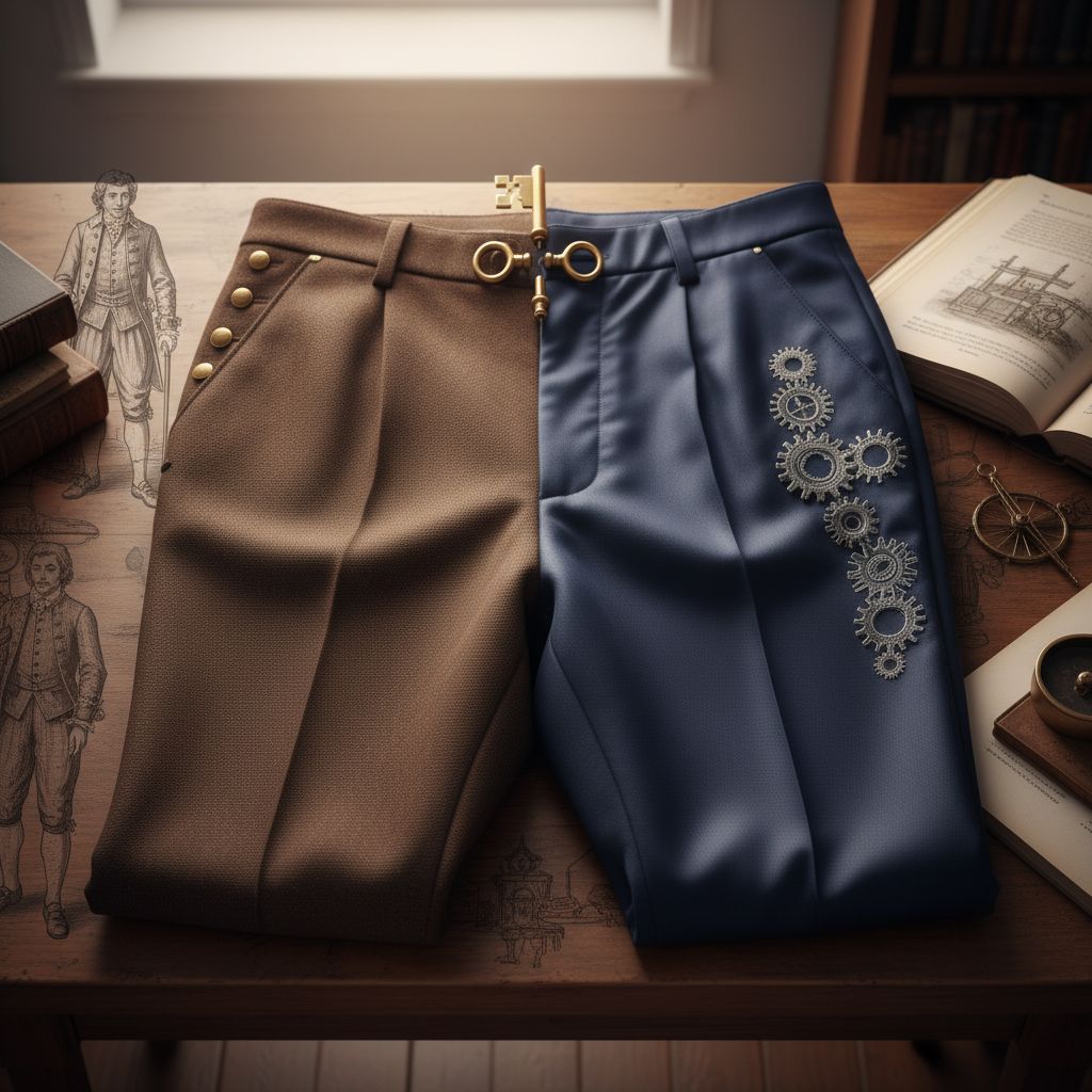 La Revolución Industrial del siglo XIX supuso la estandarización y la producción en masa de la ropa. Las técnicas de sastrería se hicieron más eficientes, y la estructura del pantalón, como una sola prenda cosida en la cintura y el tiro, se consolidó definitivamente. Ya nadie confeccionaba calzas separadas para atar al jubón; el pantalón se compraba o se hacía como una única unidad integrada.